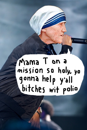 8. Mother Teresa rapping had tears coming out of my eyes. I chuckle just thinking about it.