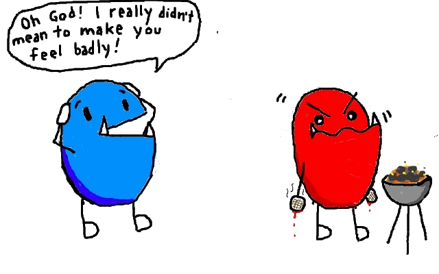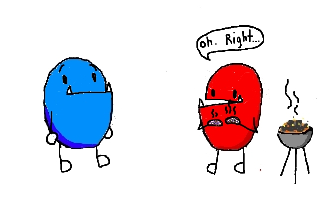 This one may be my favorite. The picture of little red dude putting his hands in the bbq is amazing!