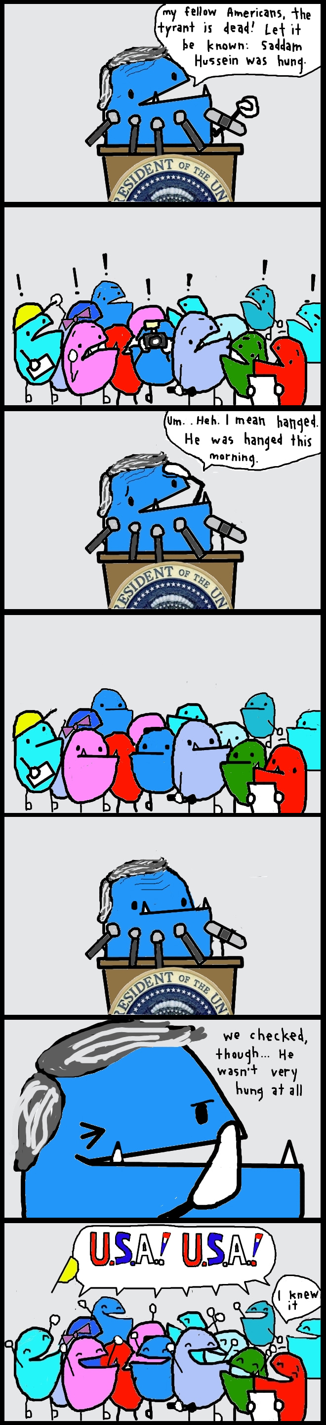 Interesting. I’ve never heard that before. As far as I know (and I made sure to double check before making this comic, just to be sure) it’s hung for things and hanged for people. I would always say “The clothes are hung in the closet” rather than hanged. Glad you enjoy my comics!
