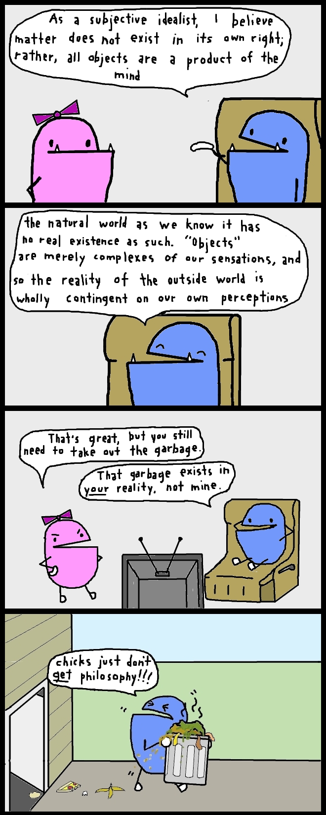 Hahaha! Owned! I’m a chick, I study Philosophy – it can work! I think I should look more into philosophical aguments for not doing housework 😉