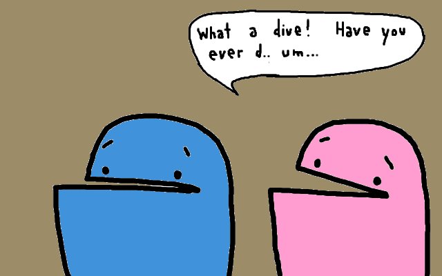 “What a dive! Have you ever… um… Oh, do you like playing chess?”