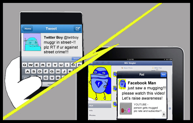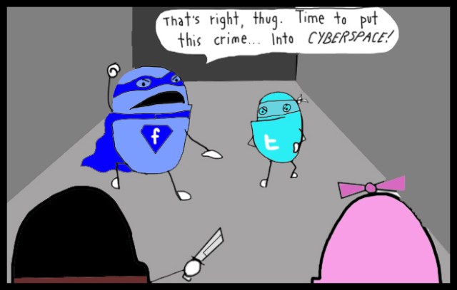 5. Brilliant! But who will take on the crimes committed on facebook and twitter? Like using excessive abbreviations, mixing up their and there and tweeting/status updating about breakfast components?