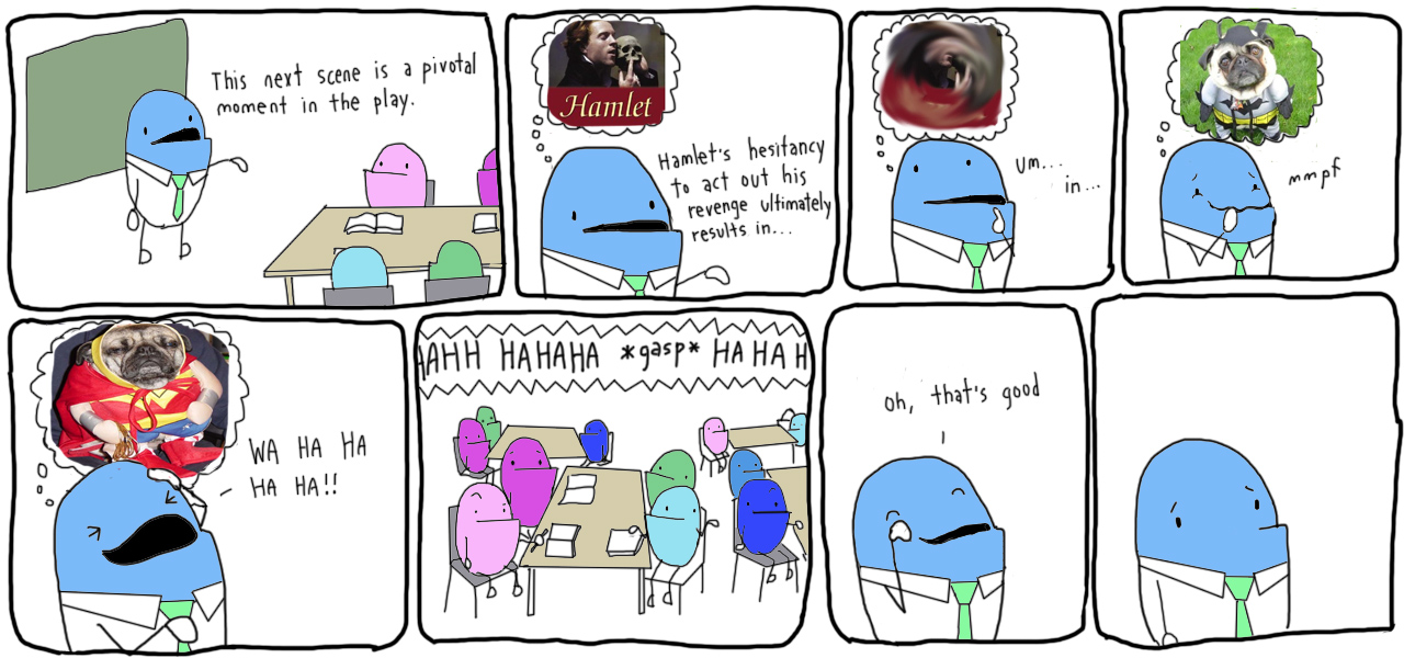 Hahahahaha! I’m so glad to know I wasn’t the only one who zoned out while studying Hamlet…although you did get paid for it…