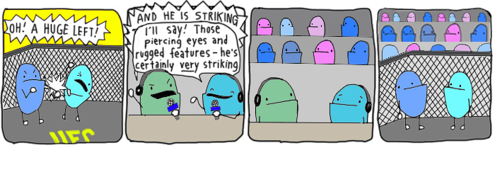 if you just listen to the call of games/matches, it can be quite humorous if your mind is in the gutter. 🙂