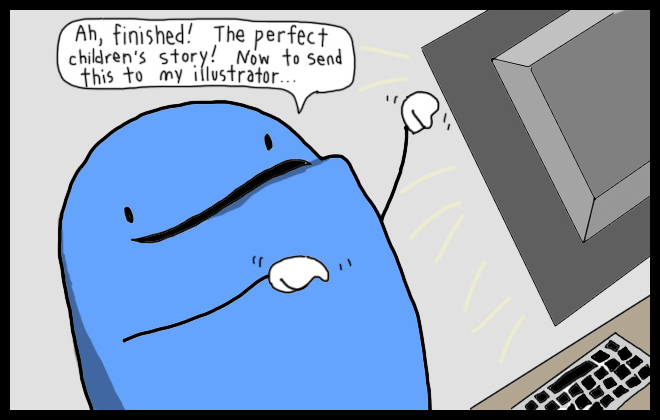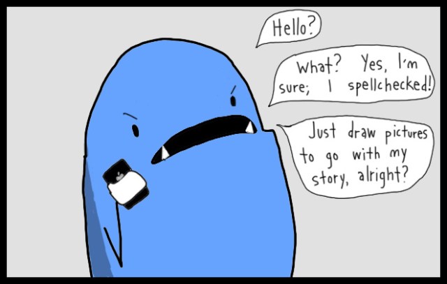 Haha, I love it! I think you might have jinxed yourself though, you have a little typo in the first panel. (Don’t feel bad, it happens to me all the time. Stupid Photoshop and no spell check.)