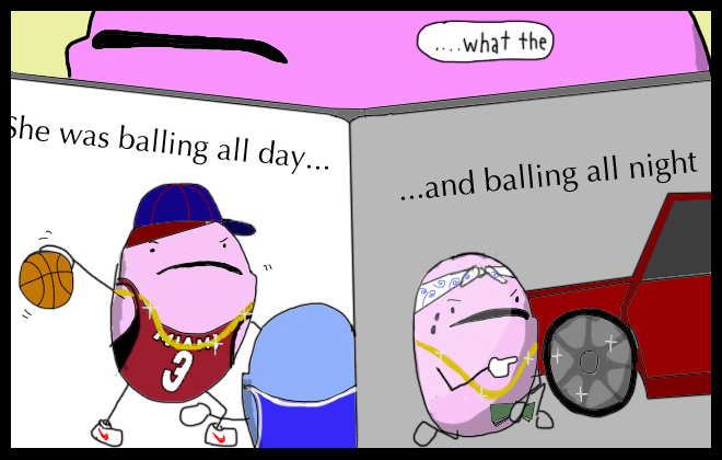 Well, at least the illustrator used the current slang definition of “balling” rather than the 60s slang definition of balling.