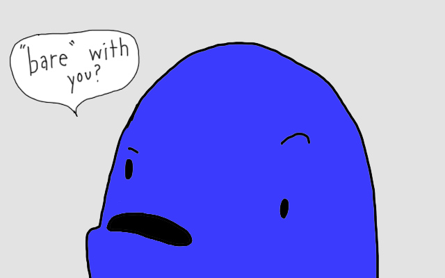 So we’re clear, it’s “bear with me”, not “bare with me”: